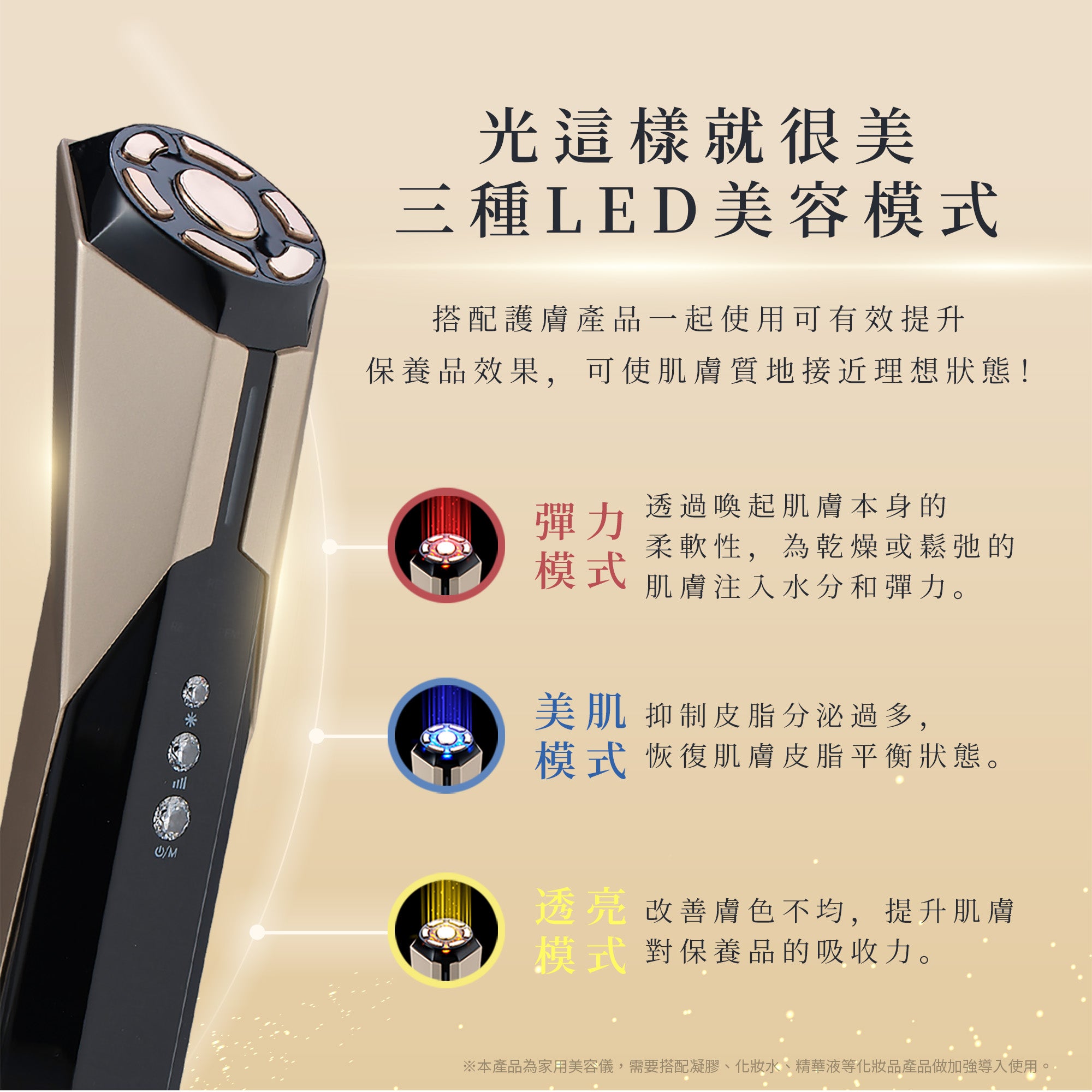 - LED 美容 - 彈力模式、透亮模式、美肌模式