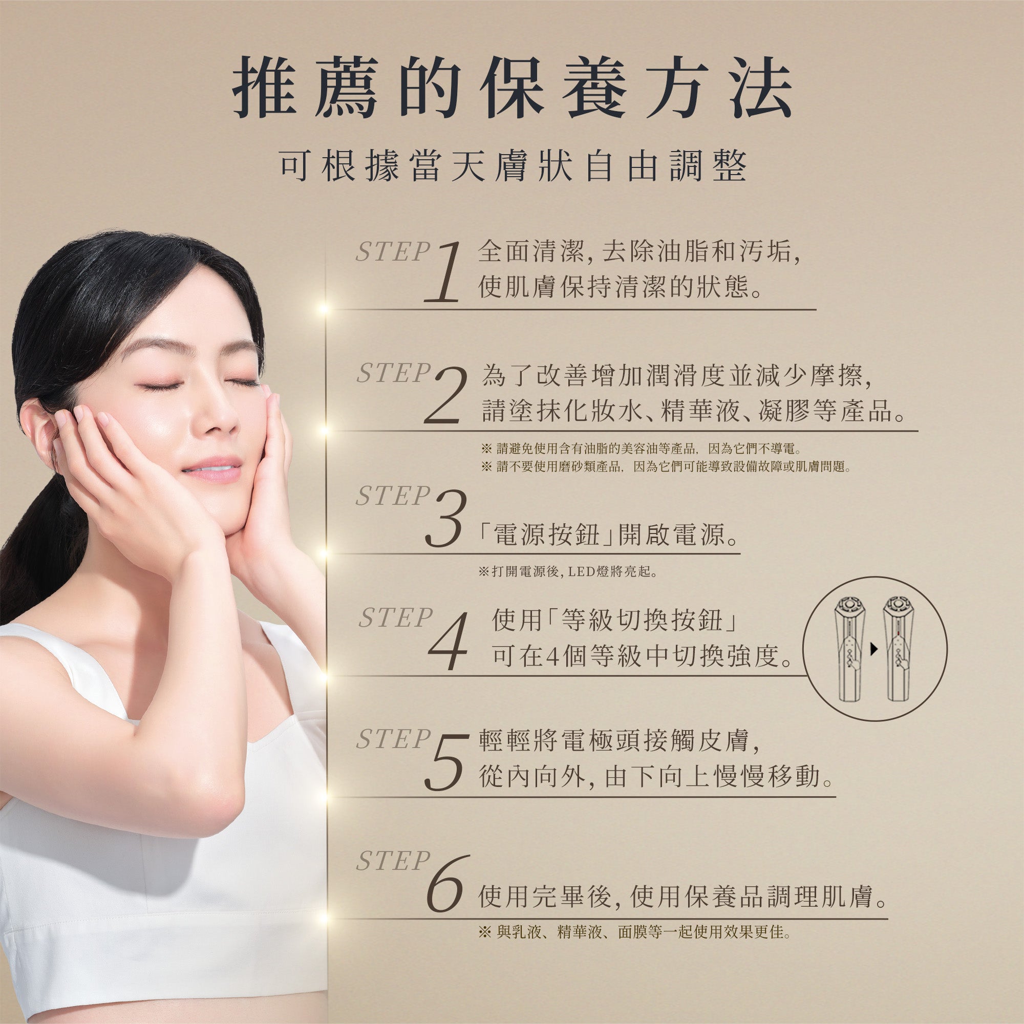 - EMS 低頻臉部按摩模式 - 恢復青春線條、淡化細紋