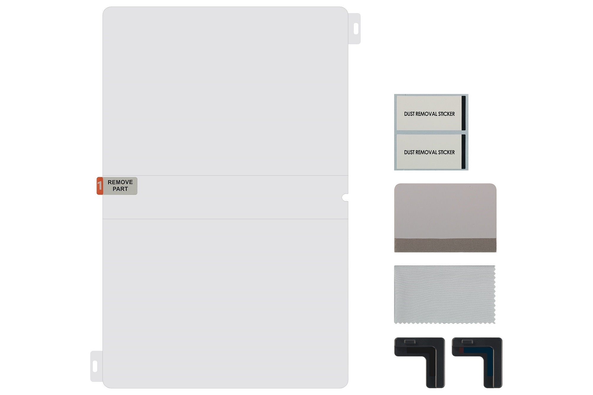 你也可像專業人士般貼上屏幕保護貼。只需使用貼膜器將保護貼準確對準裝置便可。你亦可以使用隨附的刮水器、布和除塵貼紙輕鬆地清除屏幕上殘留的氣泡或灰塵。