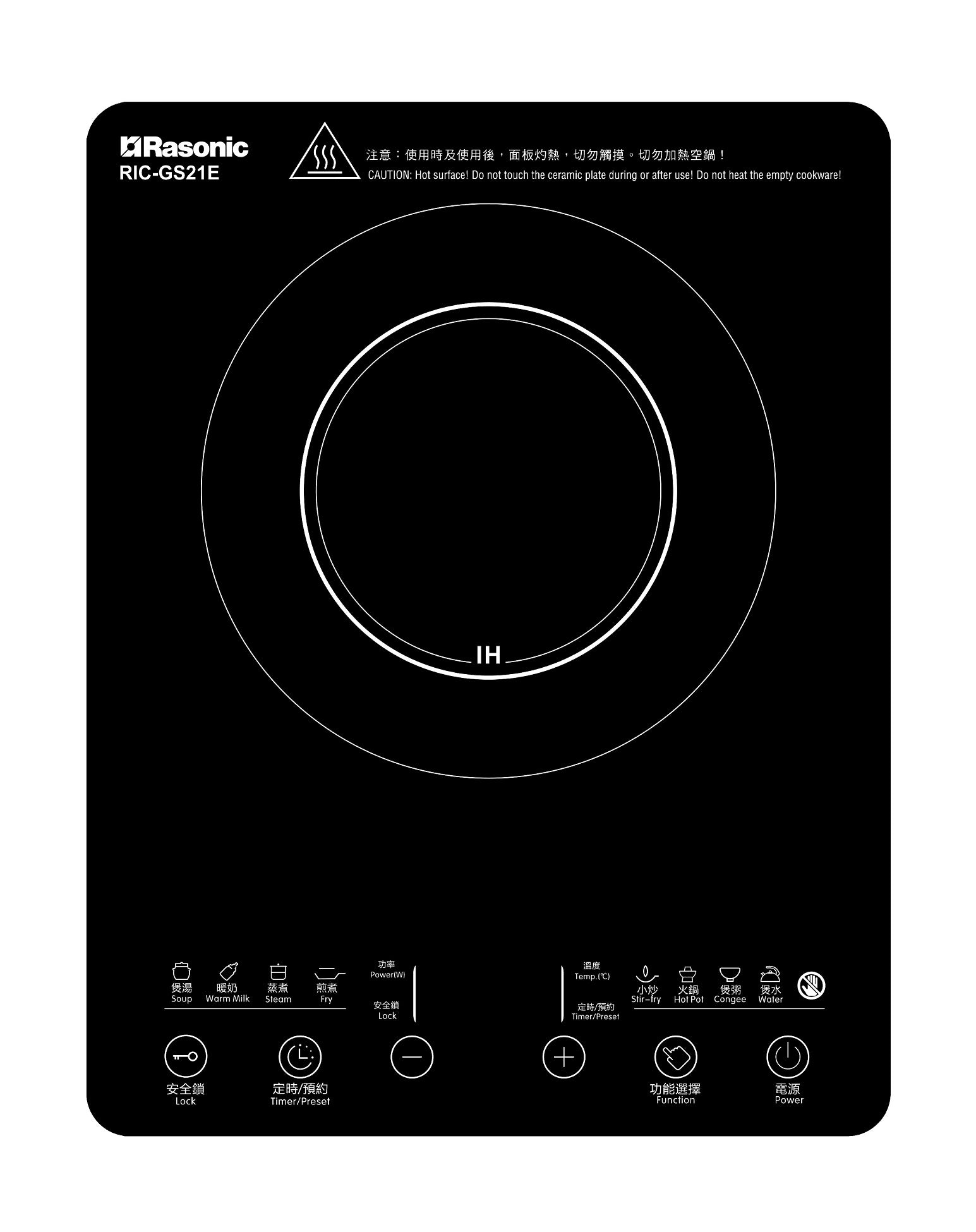 - 備有安全鎖及餘溫顯示燈