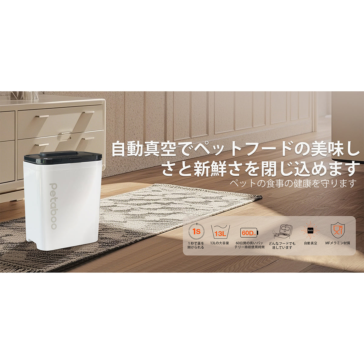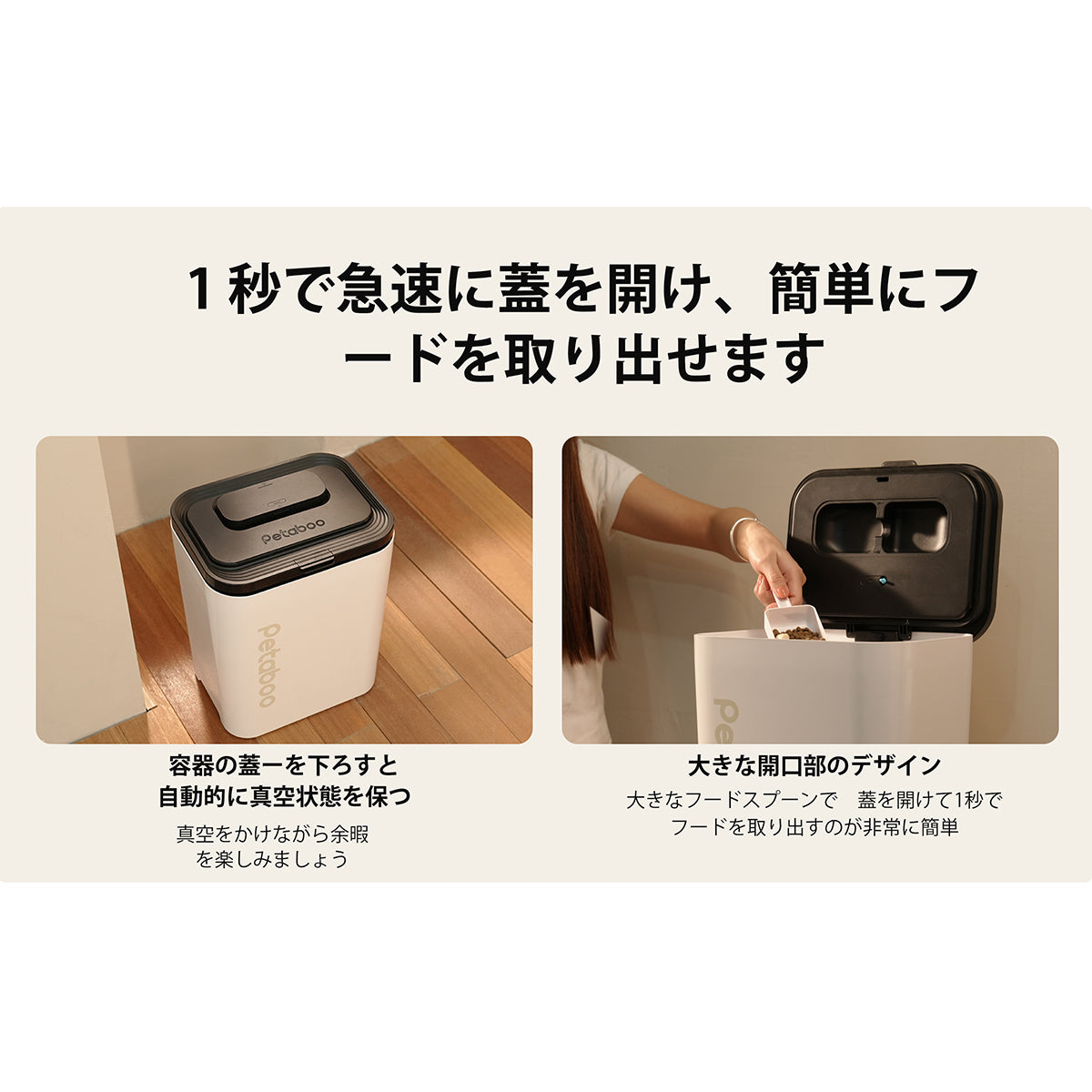 專為寵物食品儲存設計,透過自動真空技術與密胺材質打造乾燥衛生的儲糧環境,有效防止食物受潮變質及細菌污染,持久鎖住糧食鮮脆口感。 同時減少糧食浪費,更能避免寵物因食用變質食物引發的健康問題