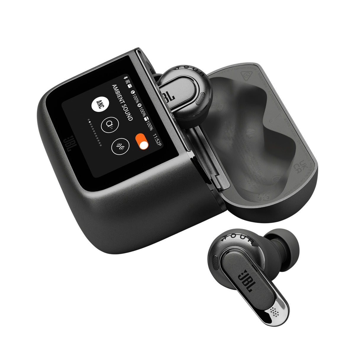 Get ready for the smartest True Wireless earbuds yet. JBL Tour Pro 3 earbuds come in a newly redesigned Smart Charging CaseTM with a handy and more feature-packed touchscreen, giving you full control over your listening experience—while your phone stays in your pocket. Connect seamlessly with any Bluetooth® device and immerse yourself in your music, movies, and games with JBL Spatial 360 sound with head tracking. The JBL Tour Pro 3 are also powered 由 legendary Hi-Res JBL Pro Sound. When it’s time to work, tune out the world with Real-Time True Adaptive Noise Cancelling. On a flight, use the Smart Charging CaseTM as an audio transmitter dongle to wirelessly connect to the inflight system (or PC) and enjoy cinematic sound experience while you’re in the air. Or at your desk, easily connect the Smart Charging CaseTM to your computer, for perfect call quality.
