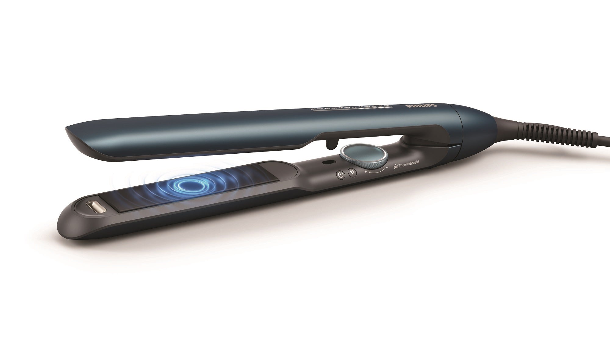 • ThermoShield technology regulates styling temperature to reduce heat damage