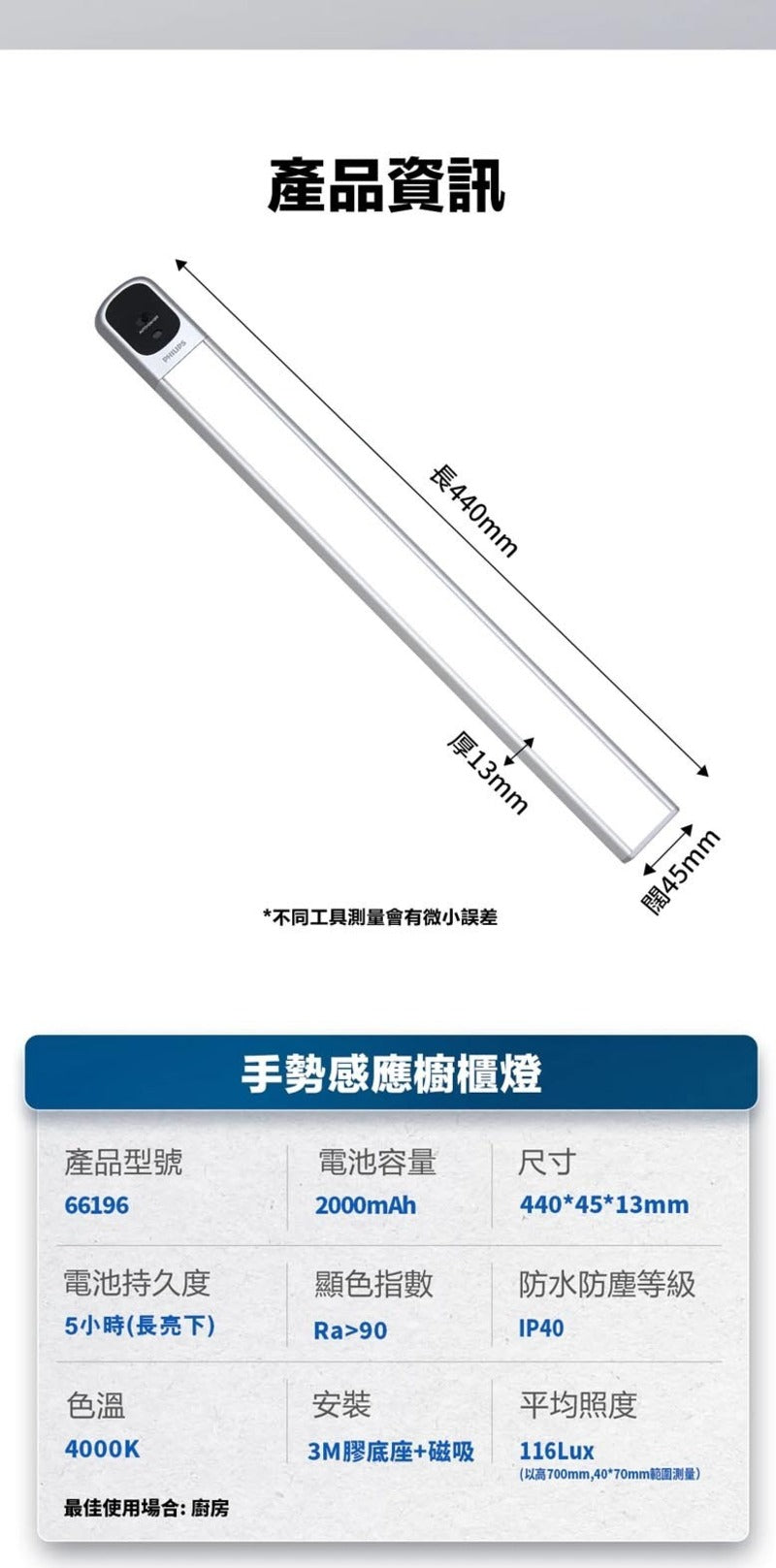 66196 CBNT gestureA 44cm 40K silver RoA 手勢感應櫥櫃燈