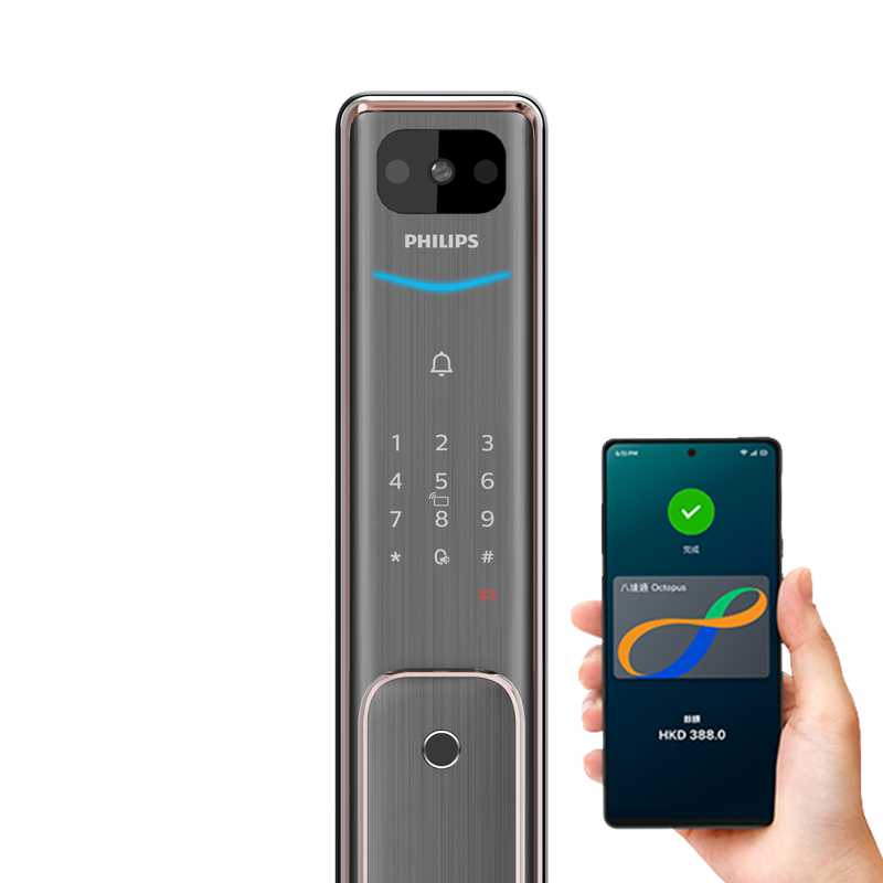 Philips Alpha-VP-OP smart lock integrates the door viewer, doorbell, and door lock. It features a 2MP wide-angle camera and supports Wi-Fi networks, allowing you to view the doorway via the App and bringing a visible security guard.