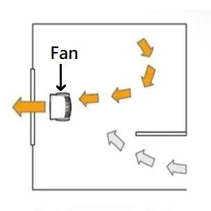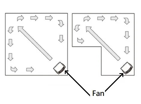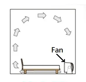 Place the circulation fan at the longest straight distance in the room to enhance indoor air circulation. It helps to dissipate moisture, and make the environment more airy.