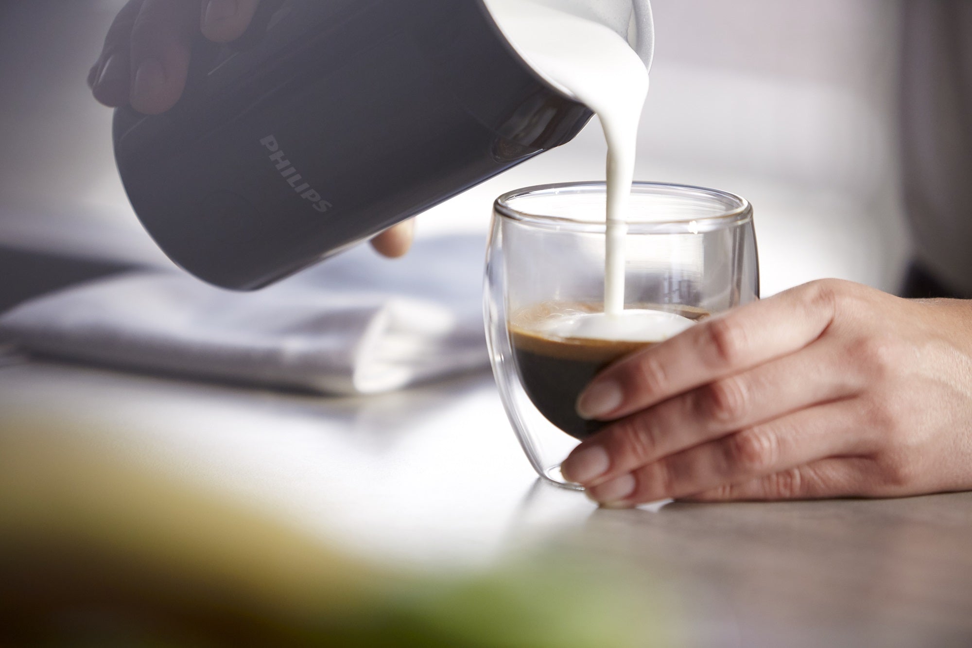 Philips 飛利浦全自動冷熱奶泡奶蓋機讓您可以在家中自由享用各種熱咖啡和冷咖啡與牛奶飲品。憑藉其創新的打泡器,您可以享用到天鵝絨般光滑的奶泡來豐富美味的咖啡和牛奶飲料,一機創造無限可能。