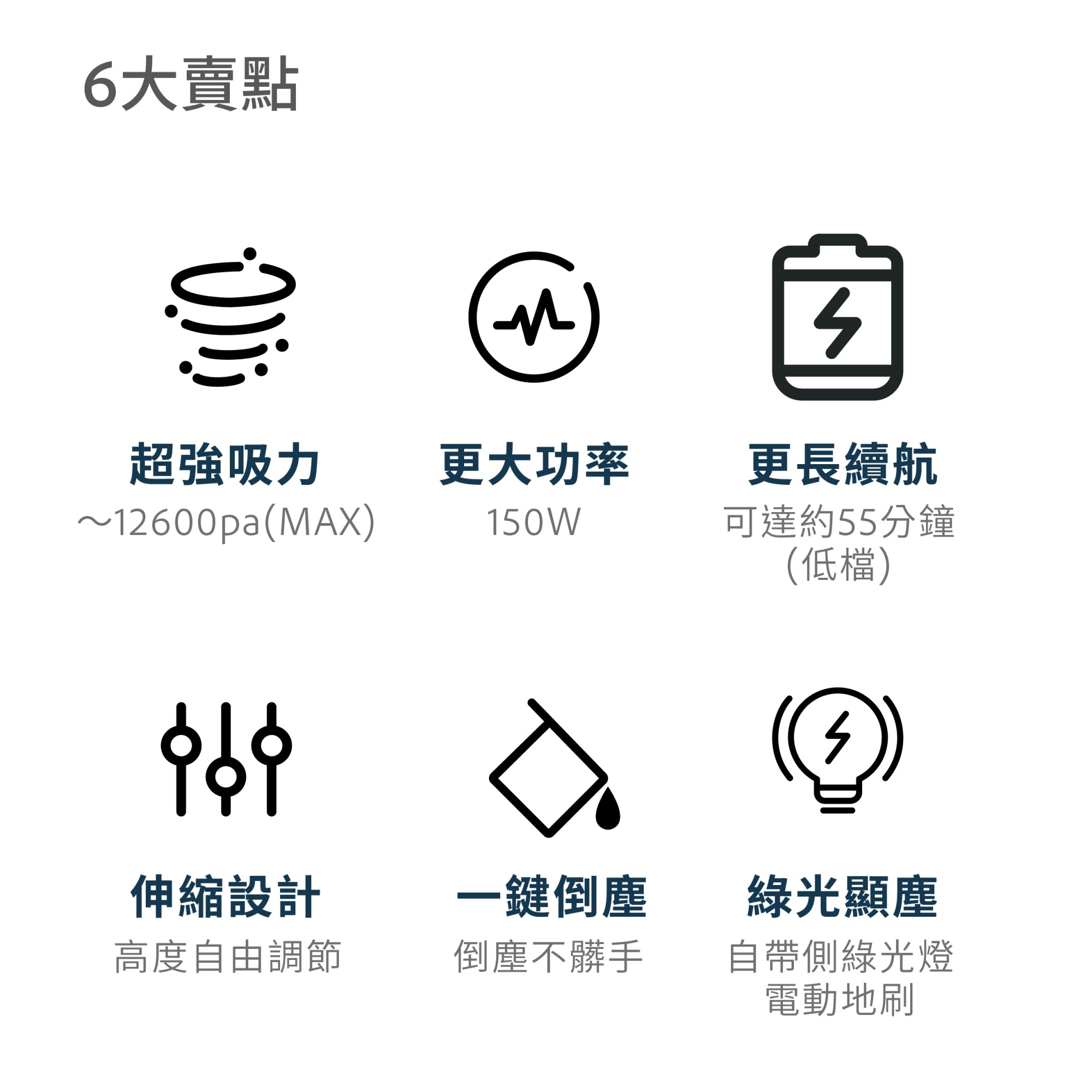 DAEWOO DY-XC808 無線多功能拖地吸塵器,擁有 150W 大功率、最高可達 12600pa 的高效清潔吸力,一部可前吸後拖、除蟎吸麈,枝桿可伸縮的全能吸塵機 . 可拆卸大容量水箱及拖布,吸麈拖地一步清潔到底, 加上內置 2000mAh*6 鋰電池,充滿電後可連續使用最長約55mins (低檔) , 完全不受電線限制 ;多種配件一次備齊:二合一毛刷+長扁吸+電動除塵螨刷+LED 電動滾絨地刷+可伸縮導電鋁管+水箱(含拖布),滿足多種場景清潔需求。