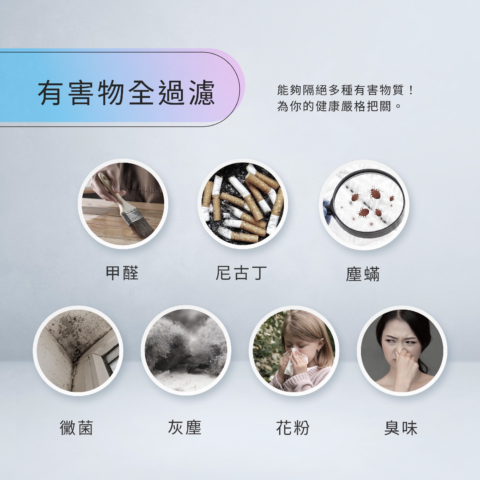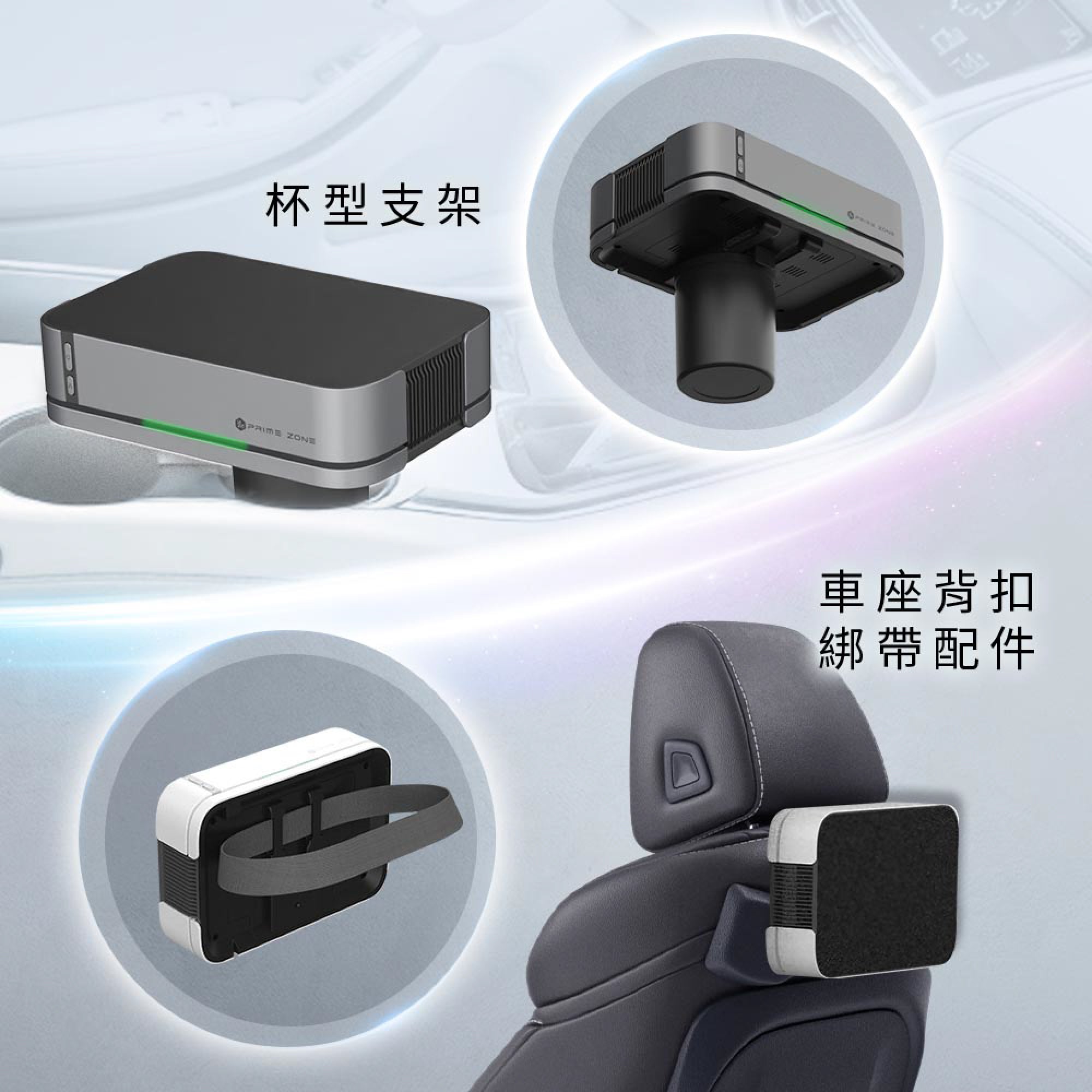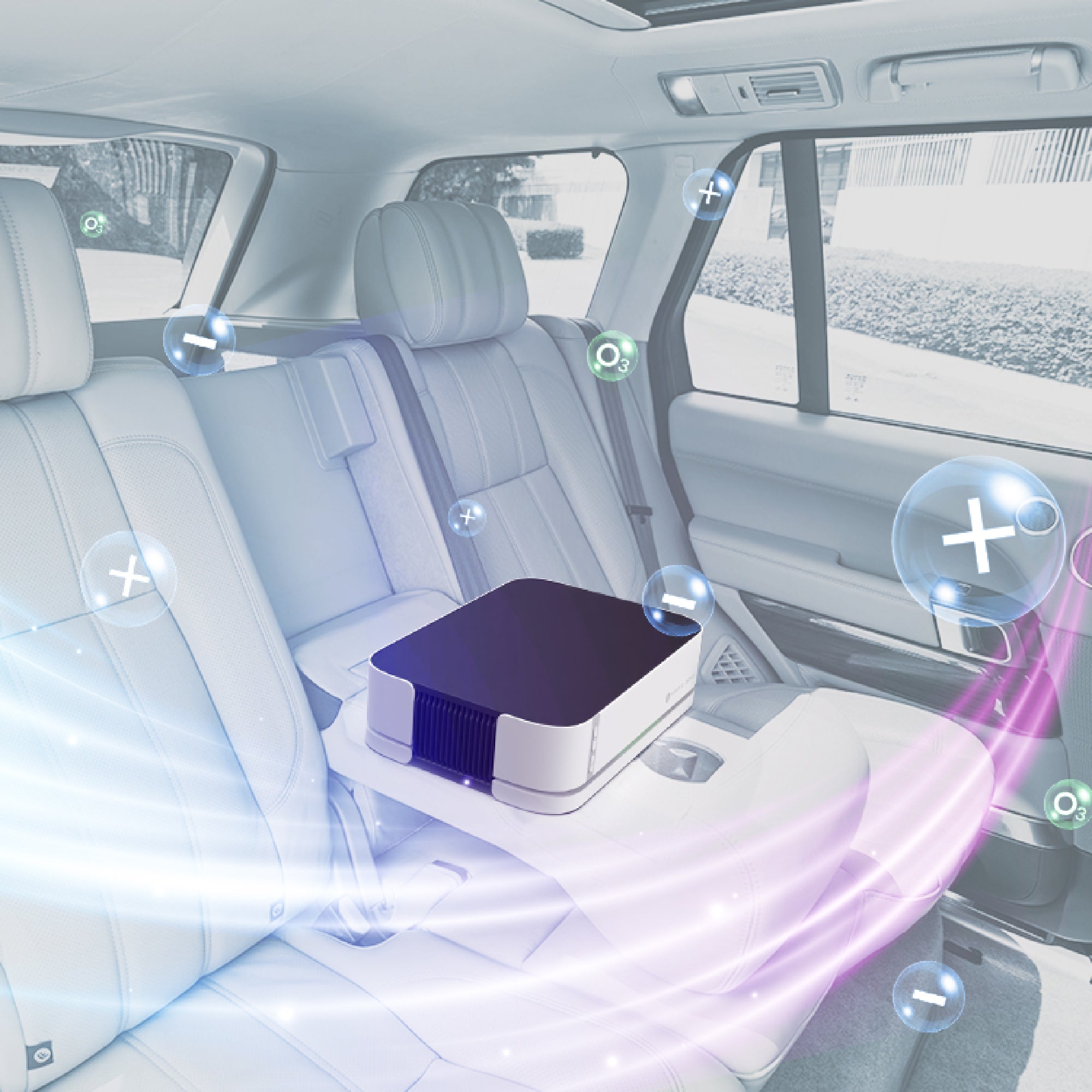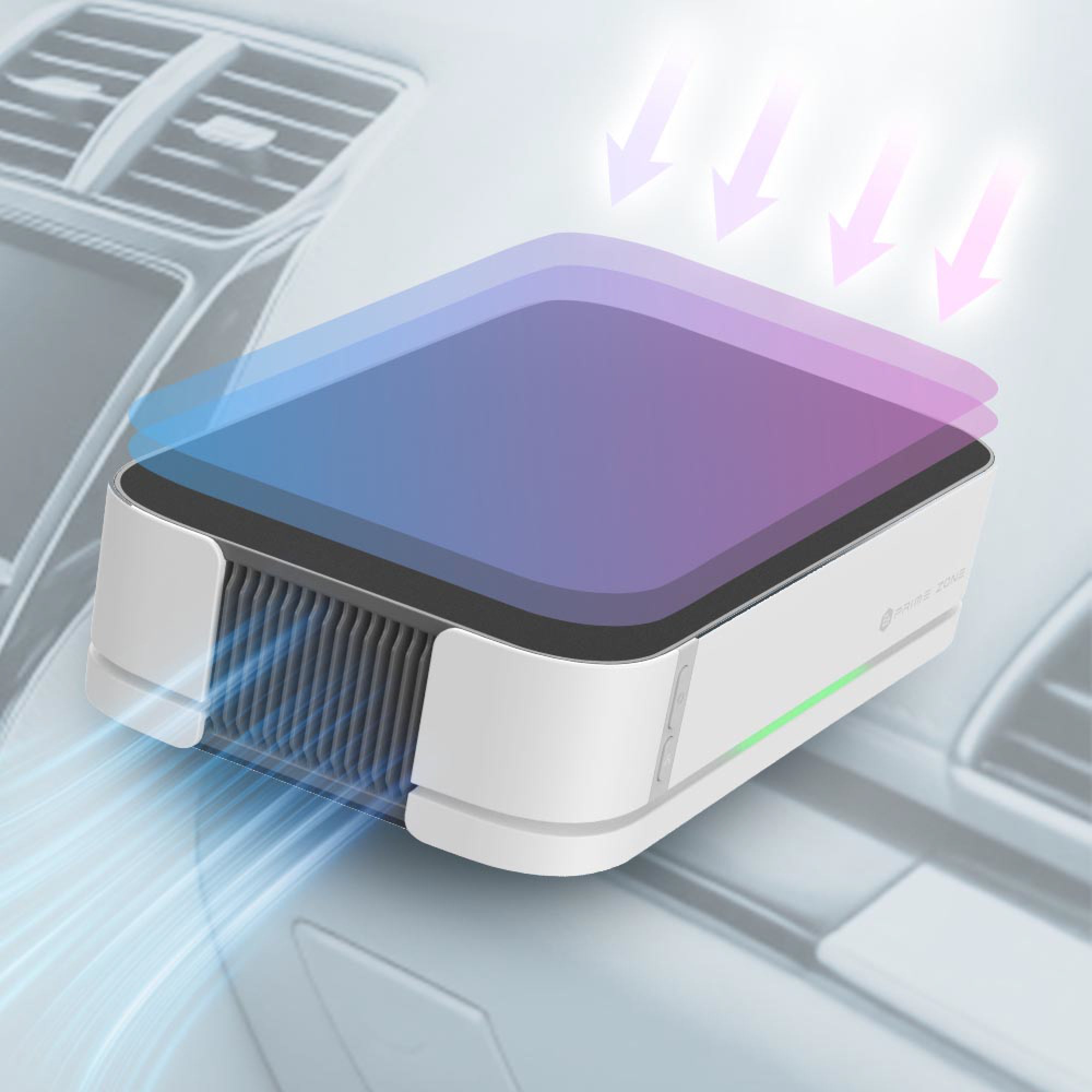 1/ 四效合一,強效淨化: 等離子光觸媒活氧HEPA濾網 2/ 智能監測自動調節 3/ 太陽能高效充電 4/ 雙風機嗰個增壓提升空氣循環 5/ 車子發動自動開機