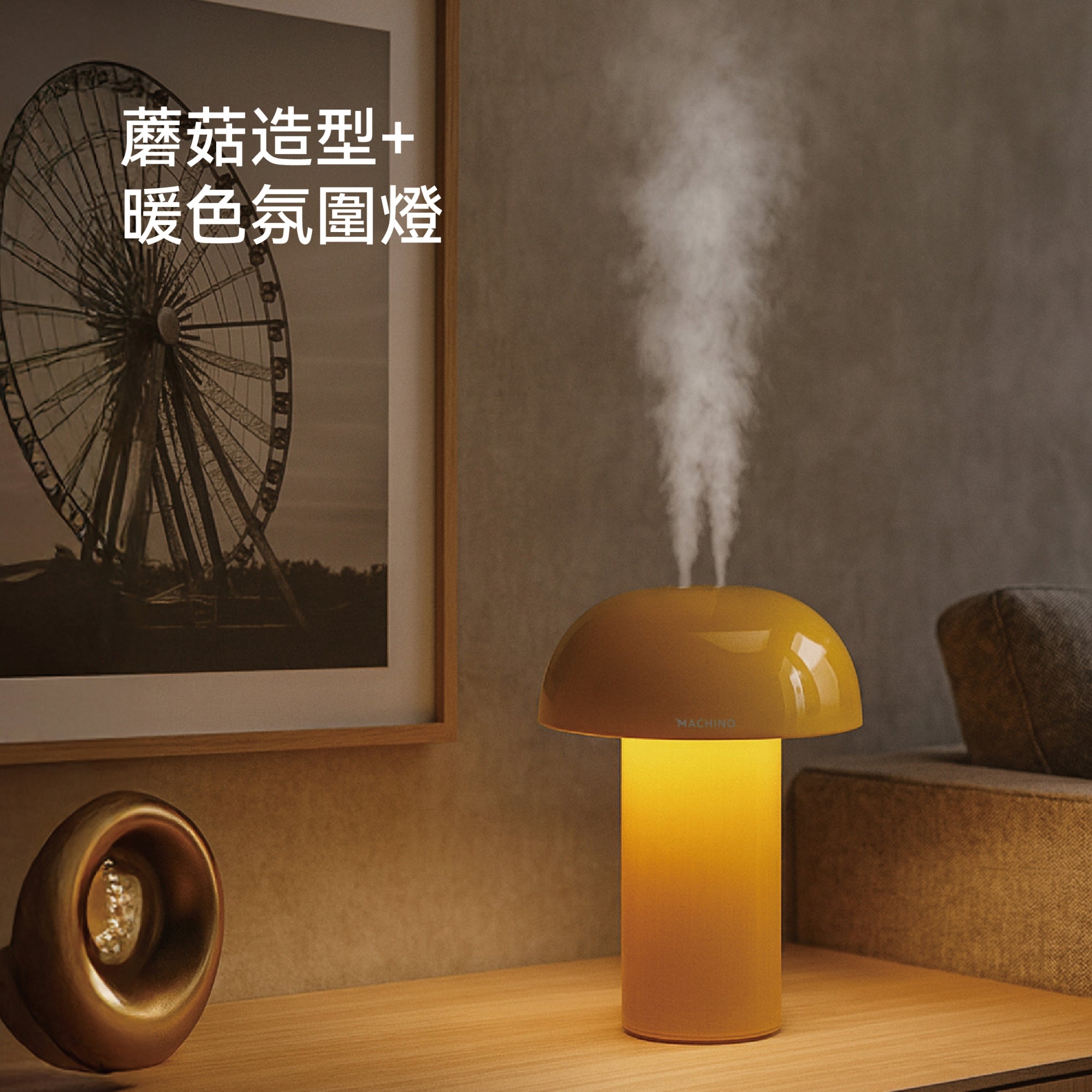 【MACHINO M1 无线夜灯加湿机】蘑菇造型治愈感满分,一机双用!500mL大容量+3600mAh电池,最长续航6小时,无线设计随处放。三档调光+双雾模式,微细水雾滋润空气,暖光色氛围灯伴你入睡。6小时自動斷電功能,安全贴心,可放屋企,床头或office 用,是您秋冬天必备的加湿机首选!