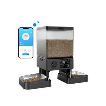 Oneisall PFD-002 Pro自动喂食器,每日最多可以设置10餐,每餐2-60份,左右双出粮位,如果家里养有两只宠物,便不会「抢食」了。